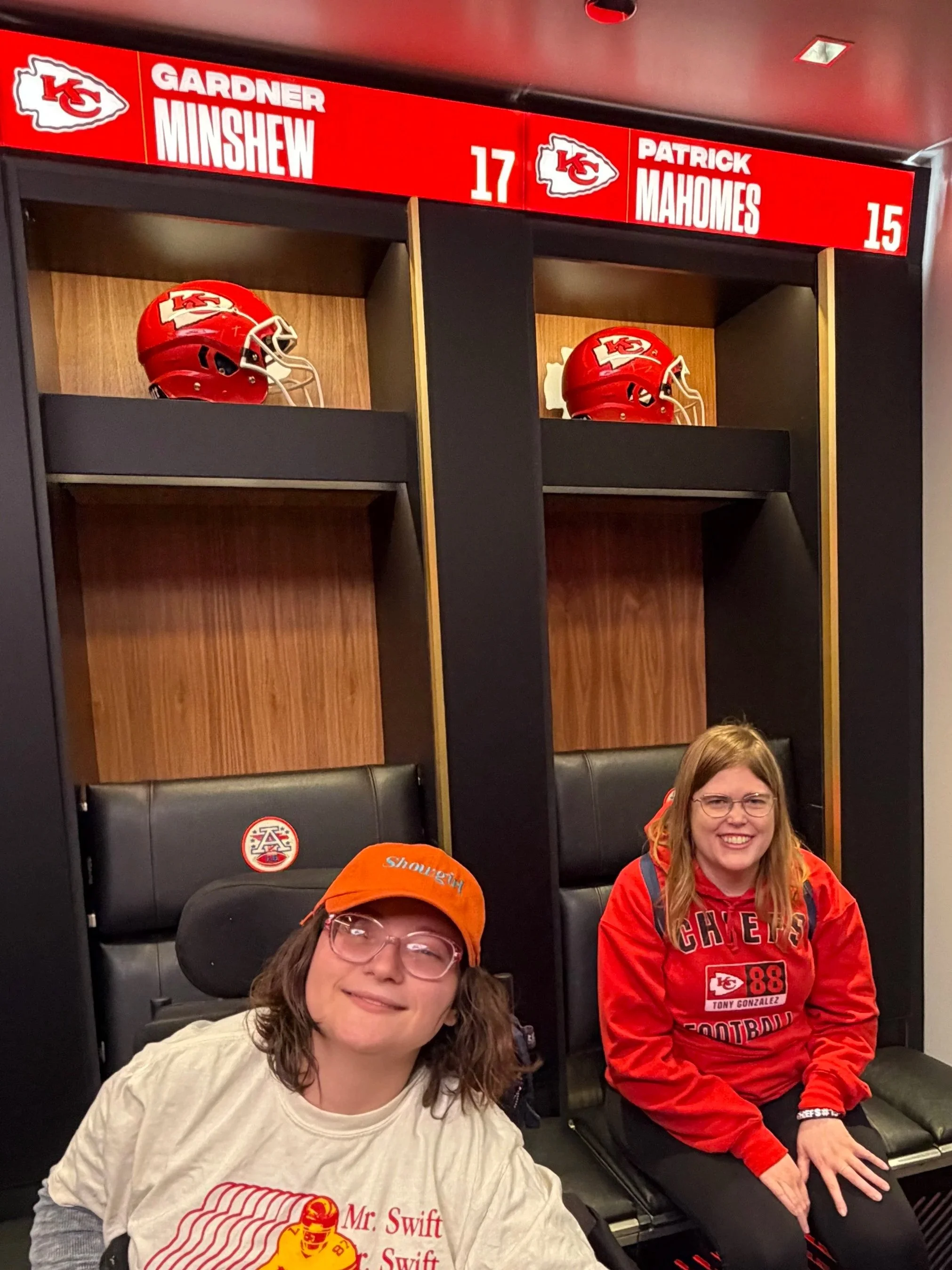 What an amazing day we had touring Arrowhead! We made our way up to the booth seats, where the wide-open view of the stadium was absolutely incredible. From there, we headed into the locker room to see where out favorite players gear up before hitting the field. And the biggest moment of the day came when we got to step onto the field ourselves, taking in the stadium from the very centers of it all. We left with plenty of excitement and team spirit for this weekend’s big game! Go Chiefs!